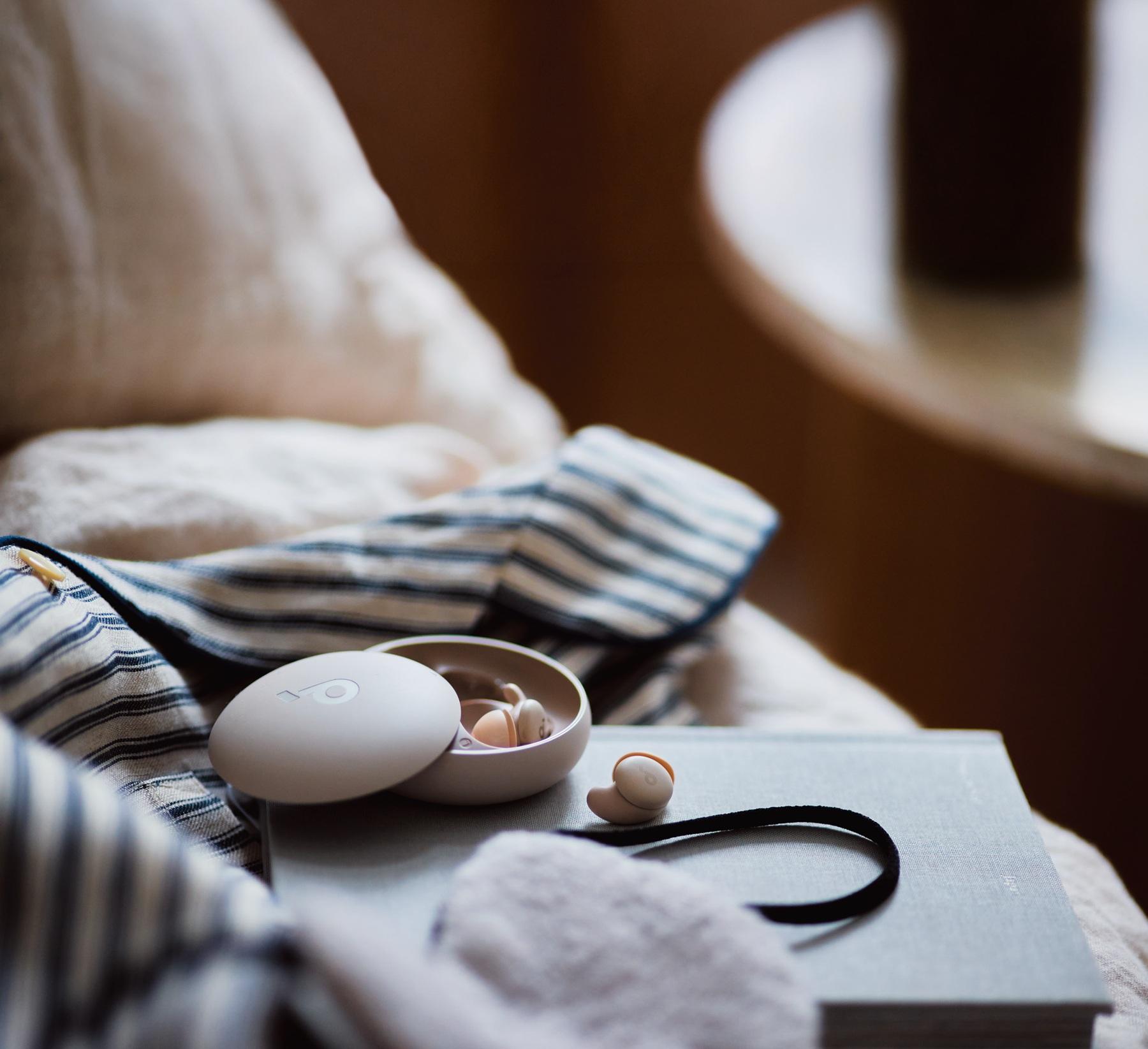 片耳約3gと軽量かつコンパクトな完全ワイヤレスイヤホン。柔らかい素材のイヤーチップは、遮音性が高く快適なつけ心地。長時間装着していても疲れにくく、寝返りを打っても取れにくいのがポイント。専用アプリと連携させれば、睡眠状態をモニタリングすることも可能。¥16,990(アンカー・ジャパン カスタマーサポート TEL:03・4455・7823)