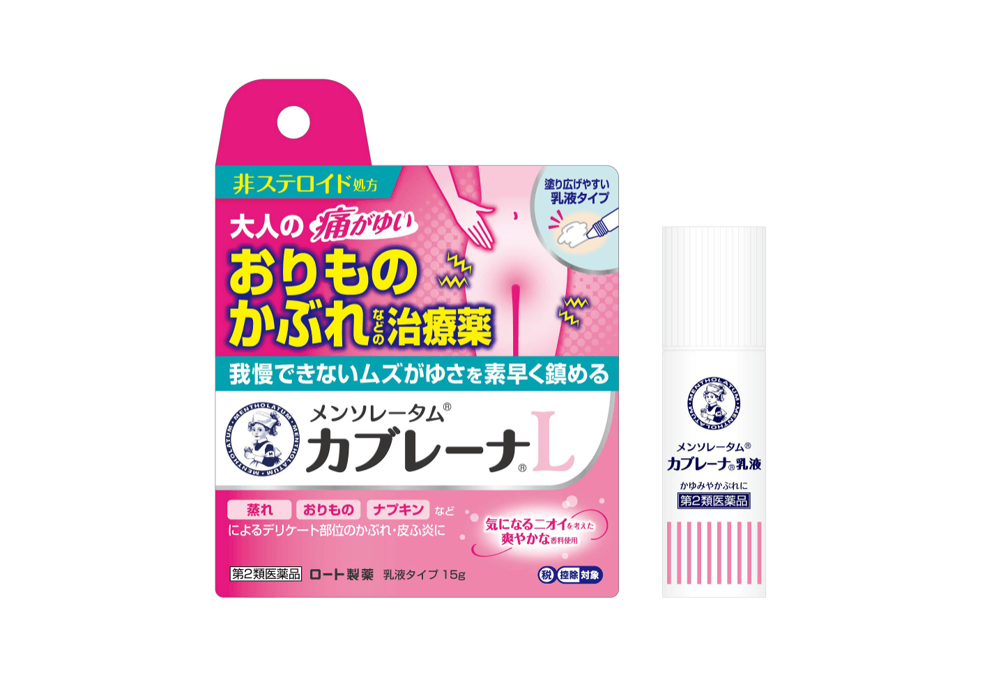 「メンソレータムカブレーナ乳液」は、おりものによるかゆみやかぶれに効く治療薬。おりものが酸性であることに着目し、酸性下で効果を発揮する殺菌剤を配合することで、かゆみやかぶれの原因にまでアプローチしてくれます。
