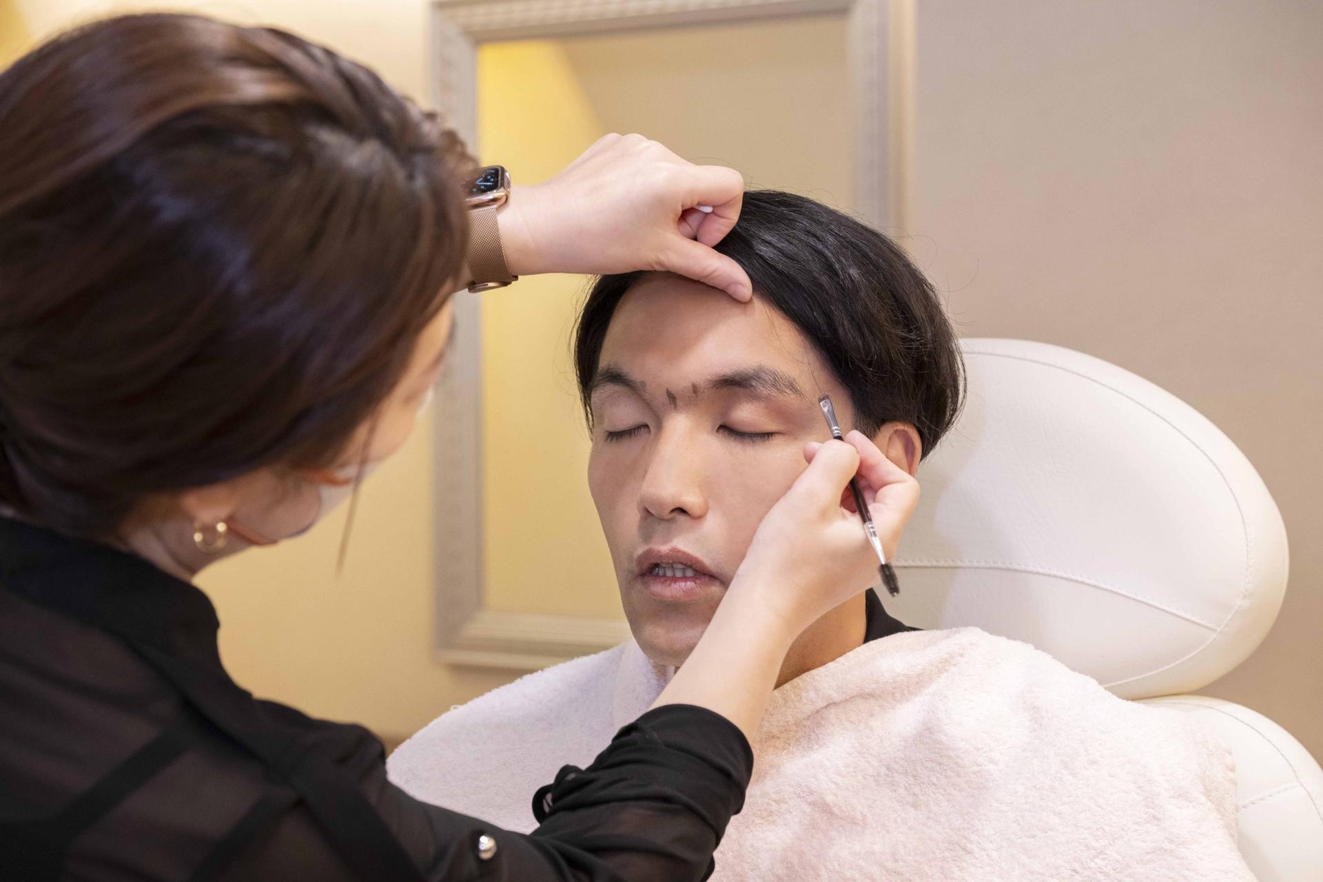 総仕上げで向かったのは、その人の骨格、筋肉、フェイスバランスを見極めて、自眉を最大限に生かしながら自分だけの眉を作る、アイブロウトリートメントサロン「アナスタシア ミアレ 表参道店」。実は眉は、顔全体の印象を創り上げるのだという。「眉で? ほんまですか?」と半信半疑の盛山さんに、「独自の理論で、理想的な眉に仕上げます。盛山さんの場合、眉山を内側に入れることで小顔効果も出ますよ」とサロンスタッフ。「眉にこだわりが特にないので、たまにメイクさんにシェイバーで整えてもらう程度」だったというが、顔の印象は、一体どう変わる⁈