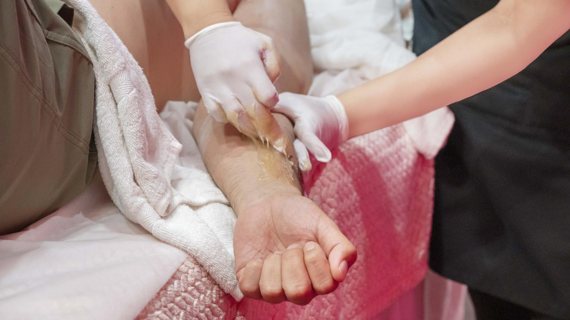 グラビアの撮影を翌々日に控え、訪れたのは「ラミーナ渋谷店」。砂糖とレモン、水でできた、オールナチュラルな“シュガーペースト”を使い、気になる部分の体毛を除去していく。ペーストが毛穴にまで浸透し毛根をキャッチすることで、毛がキレイに抜けるという。また毛穴汚れまでケアできて、砂糖による保湿作用も期待できるため、肌のトリートメント効果も高いという施術だ。