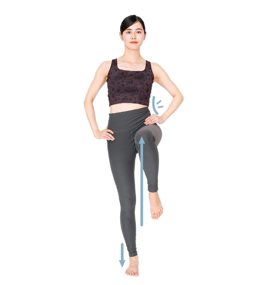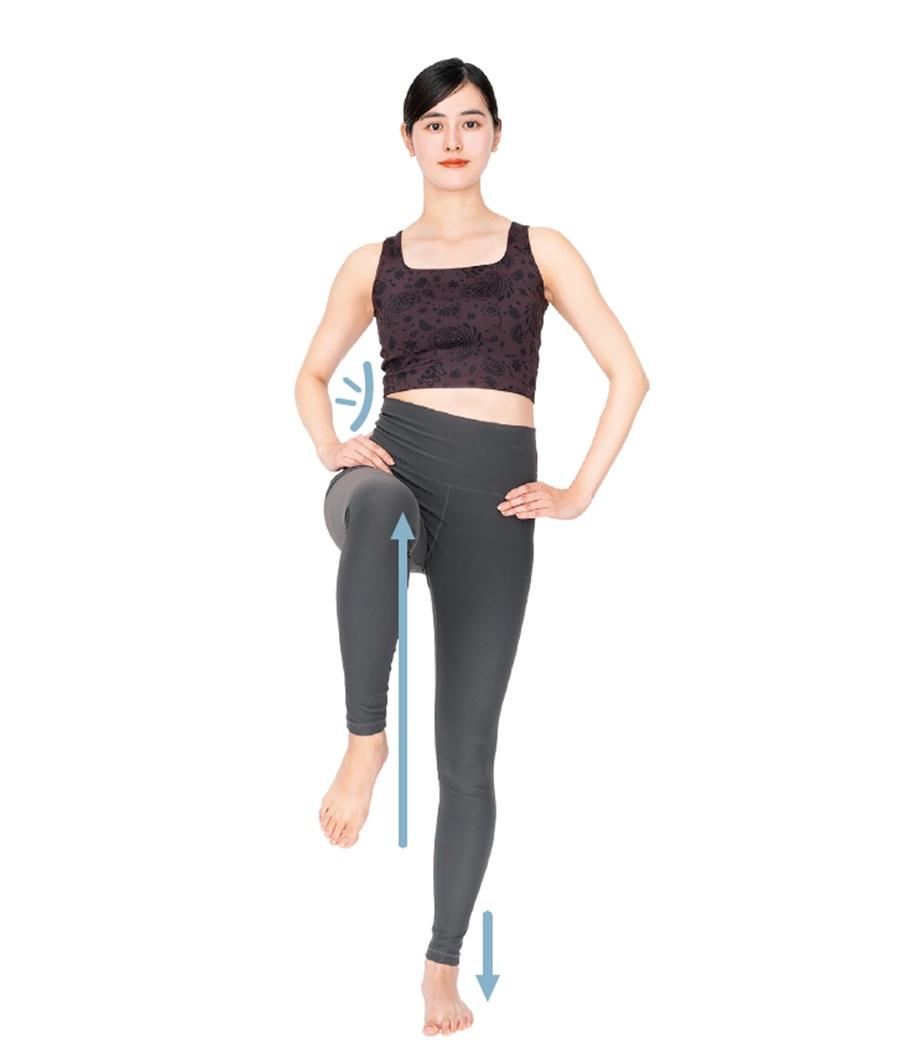 重心がぶれずに片足をスッと上げたまま維持できれば、骨盤の上下の動きはスムーズ。