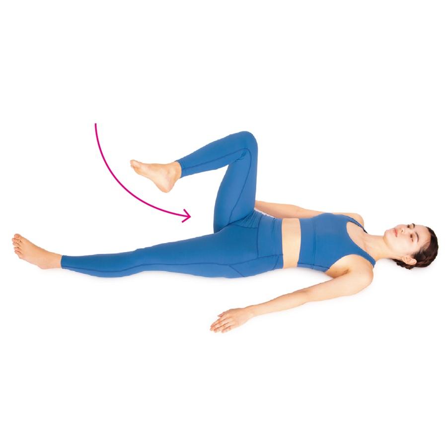 体温が上がり、筋肉がやわらかくなった入浴後は、股関節まわりのストレッチと軽いエクササイズを。柔軟性が高まり、骨盤周辺の血流が促されてむくみの改善にも。深い呼吸とともに行うことで副交感神経が優位になって心身がリラックス。睡眠の質も向上へ。