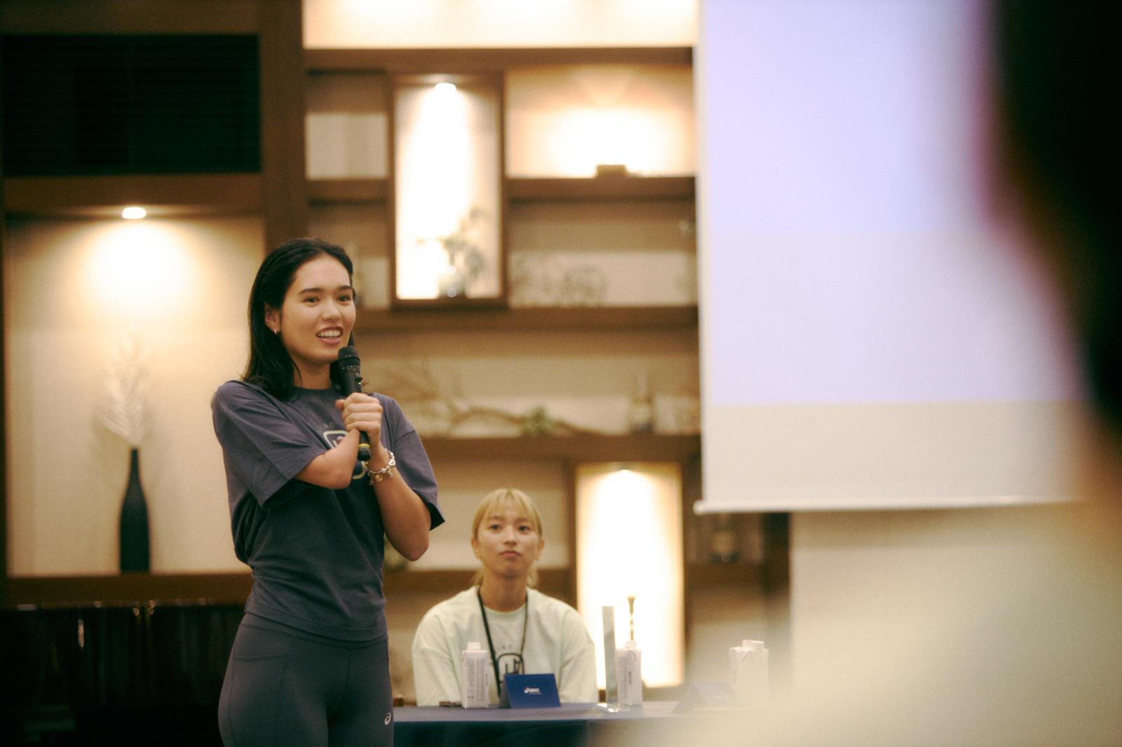 参加者を代表してイベント参加の意気込みを語る、アシックスブランドアンバサダーの一ノ瀬メイさん