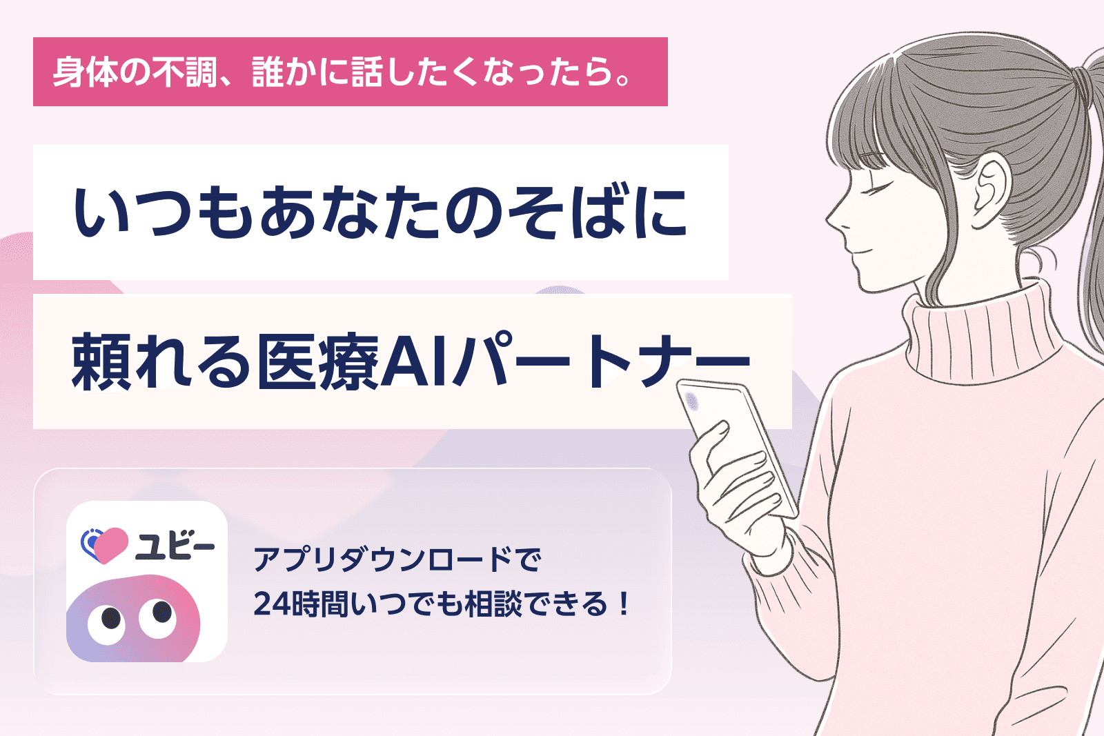 不調の時、相談しても共感されずに悩んだことはないですか? 検索して余計不安になったことは? そんな不安に寄り添ってくれるのが、医師が開発したAIパートナー「ユビー」。体調が気になった時、スマホでアプリを開くだけで、チャット形式で優しくサポートしてくれます。