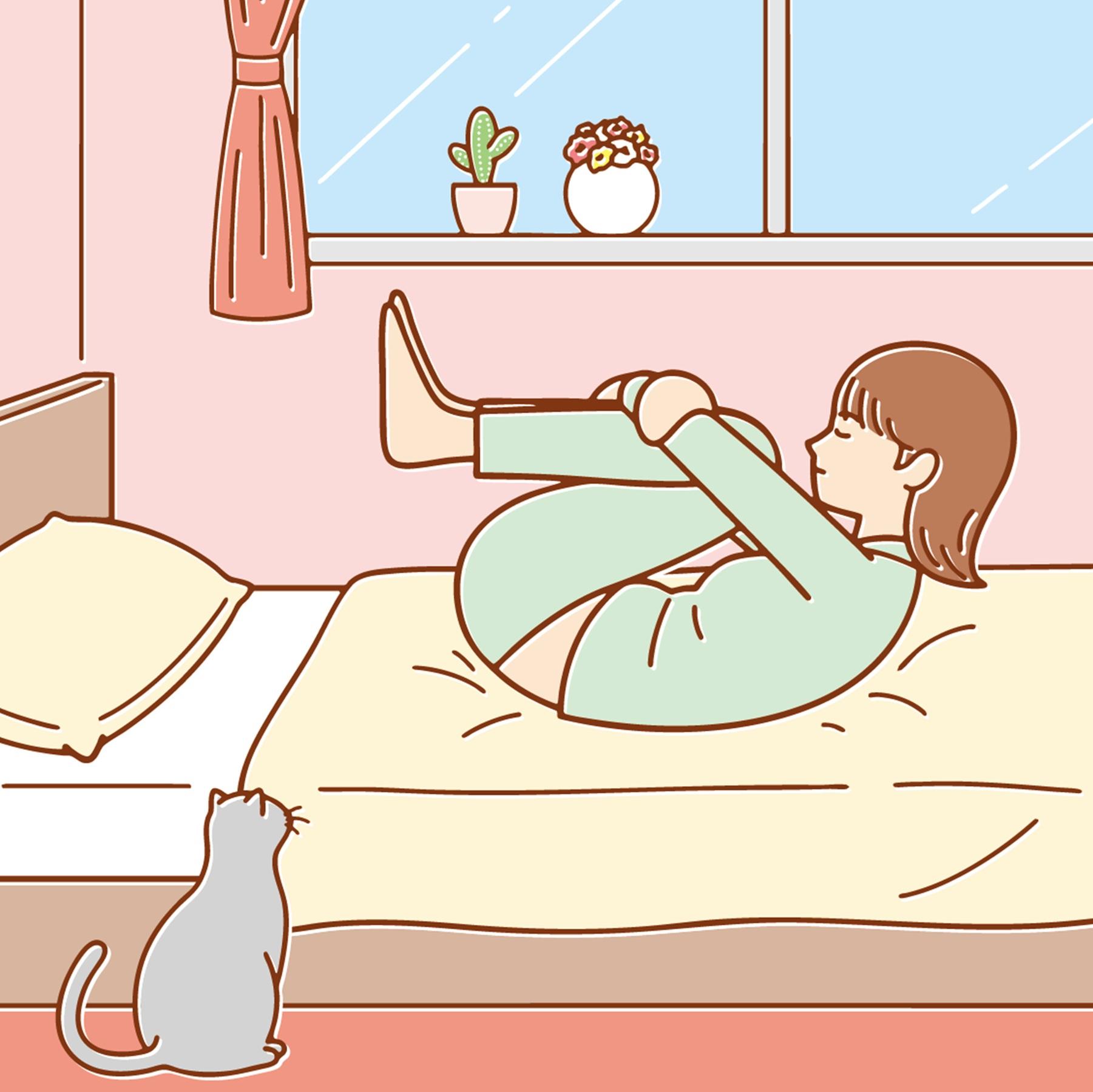 ① 起床時に寝床で軽~くストレッチ