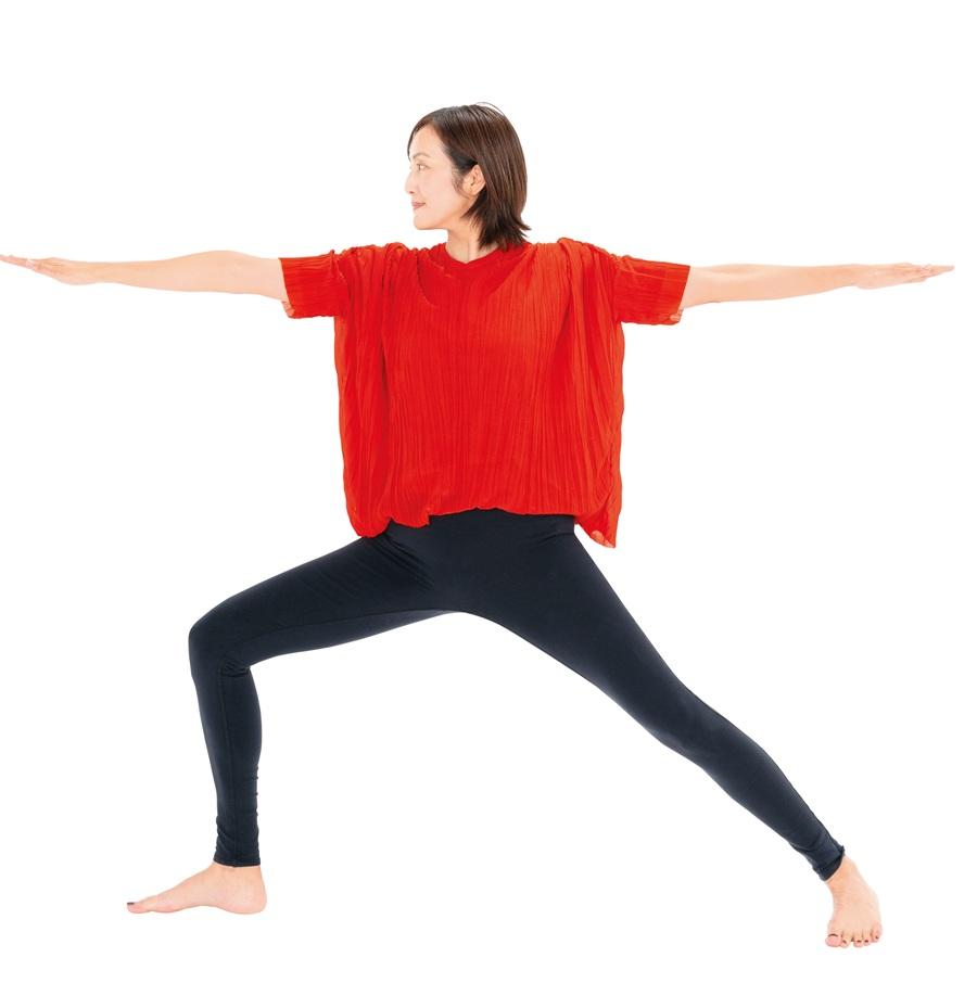 運を掴みたいなら行動あるのみ。このポーズは、戦士(ウォリアー)という名前の通り、どっしりと腰を落とし、大きく広げた腕の先をまっすぐ見つめる姿から、ポジティブに前に向かっていこうという気持ちが湧く。動きたくなる心身を取り戻そう。