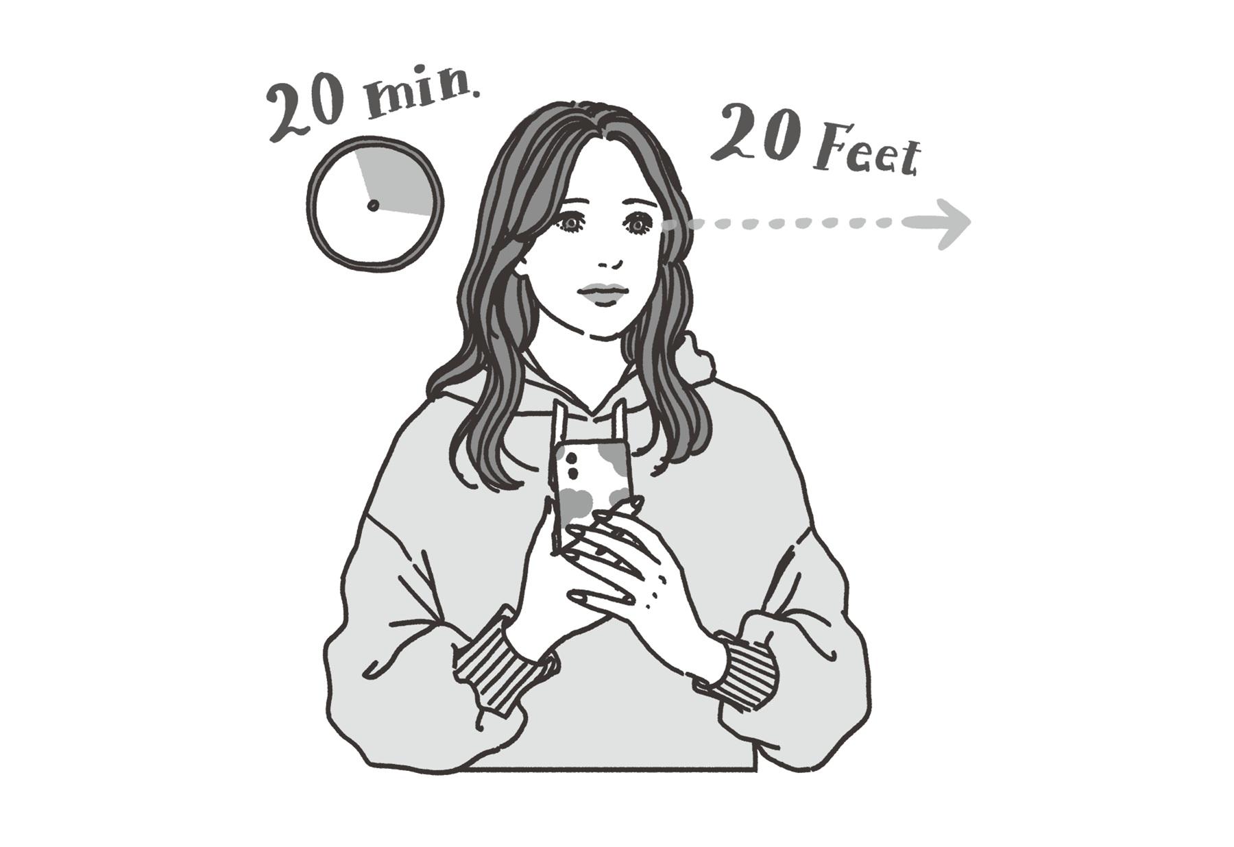 目の健康を守るために、アメリカ眼科学会が推奨しているのが“20-20-20ルール”。「これは20分に一回、20秒間、20フィート(約6m)離れたところを見るというもの。よく景色を見ると視力が上がるといわれますが、大事なのは景色ではなく遠くを見ること。スマホを見ていると20分はあっという間ですが、時間を区切って休みながら使用することがスマホ老眼対策に最適なので、このルールを取り入れてみて」