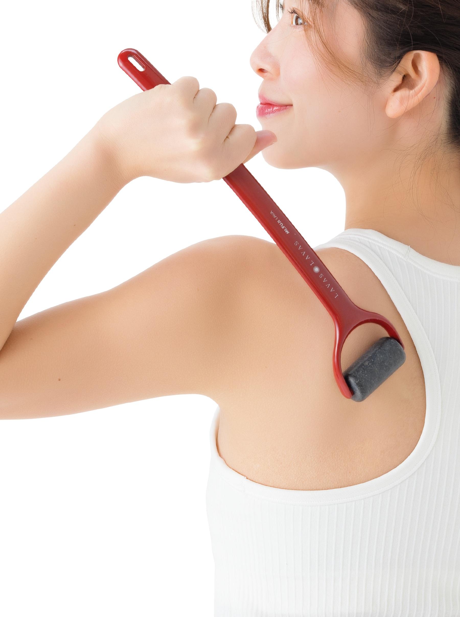 背中や腰まわりを温めた富士溶岩でコロコロすると、じんわり奥まで温かさが広がり、極上の癒しが得られます。“エアコン冷え”が気になる季節にもおすすめです。