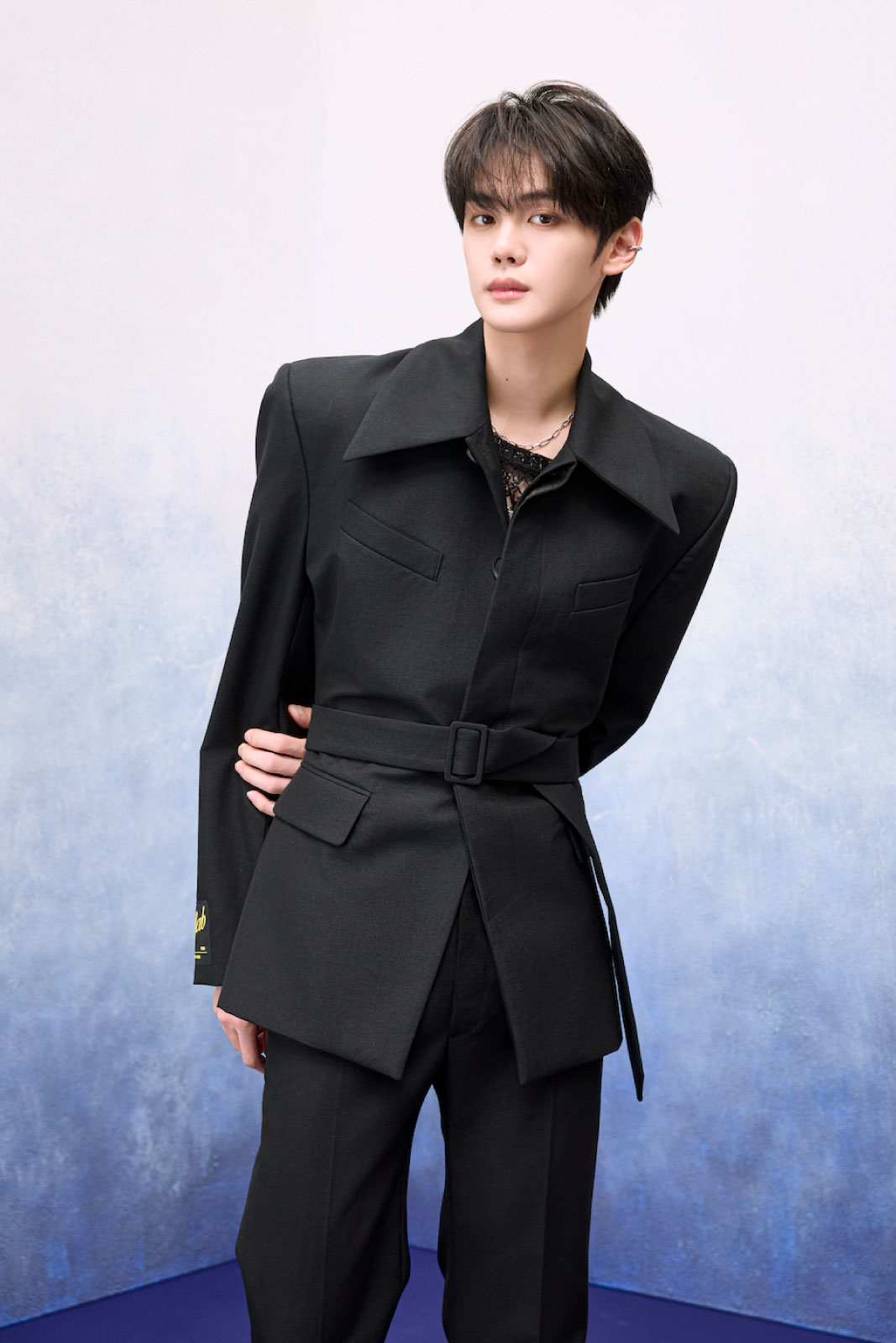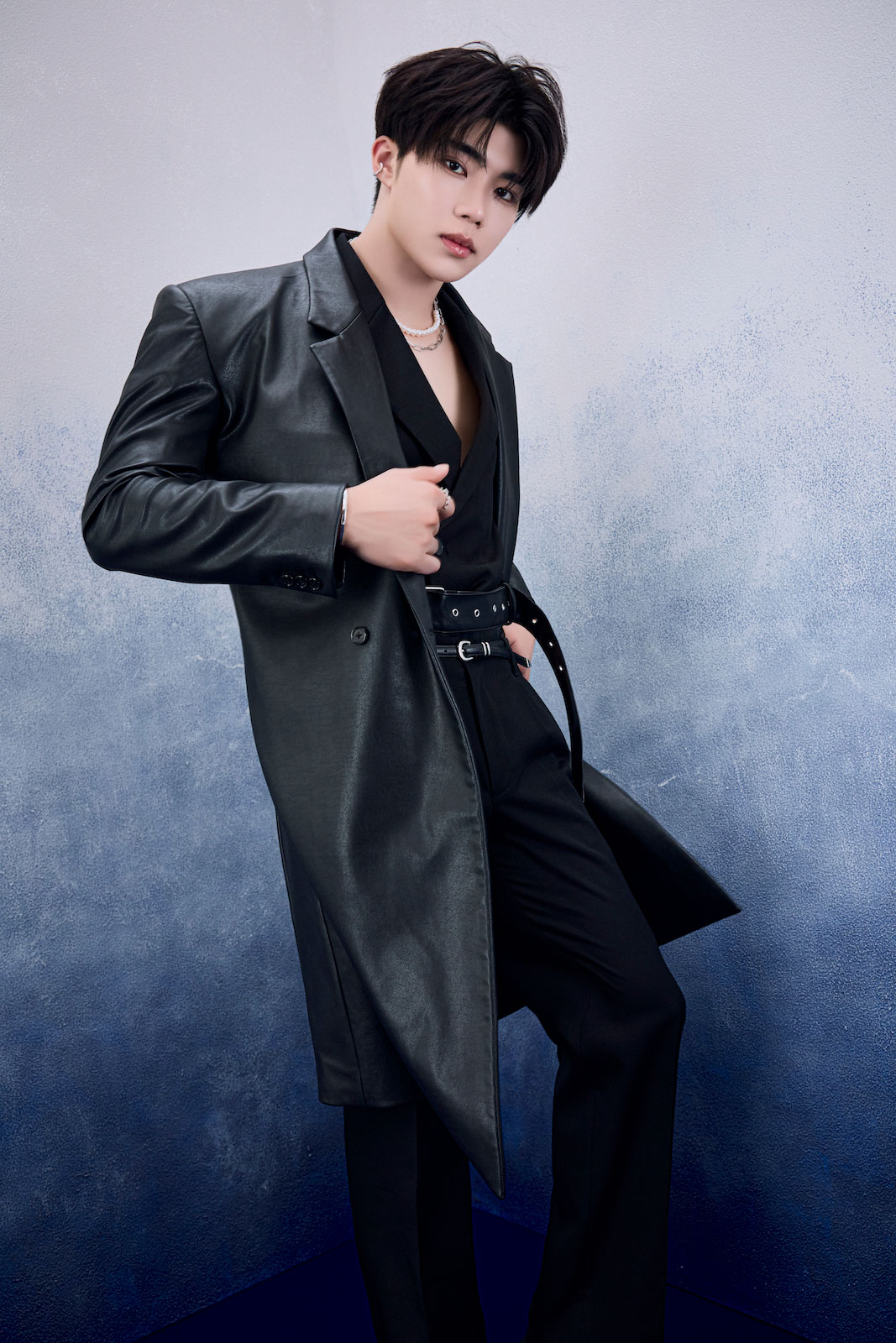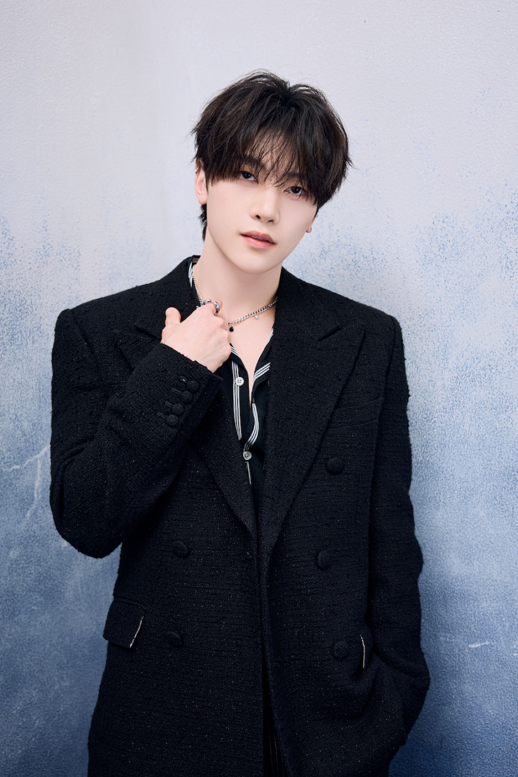 ソン・ハンビンさん ジャケット ¥206,800(アレキサンダーワン TEL.03-6418-5174) パンツ ¥44,000(ガラアーベント/サーディヴィジョンピーアール TEL.03-6427-9087) ブーツ ¥44,000(カンペール/カンペールジャパン TEL.03-5412-1844) ネックレス ¥4,400(ライオンハート/シアンピーアール TEL.03-6662-5525) ブレスレット ¥37,400(オーキ/ロードス TEL.03-6416-1995) その他はスタイリスト私物